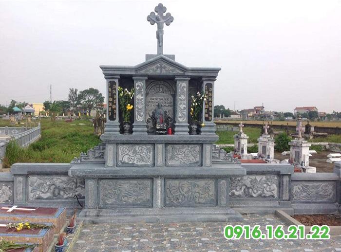 Trong đời sống của người dân đạo thiên chúa, hình tượng cây thánh xuất hiện ở tất cả mọi nơi. Đối với lăng mộ đá công giáo cũng như vậy, hình tượng cây thánh giá sẽ được đặt ở vị trí linh thiêng và cao nhất trên phần bia mộ. Hoặc một số mẫu mộ đá còn đặt cây thánh giá tại vị trí nắp mộ để tạo nên sự thành kính, tôn nghiêm cho ngôi mộ.