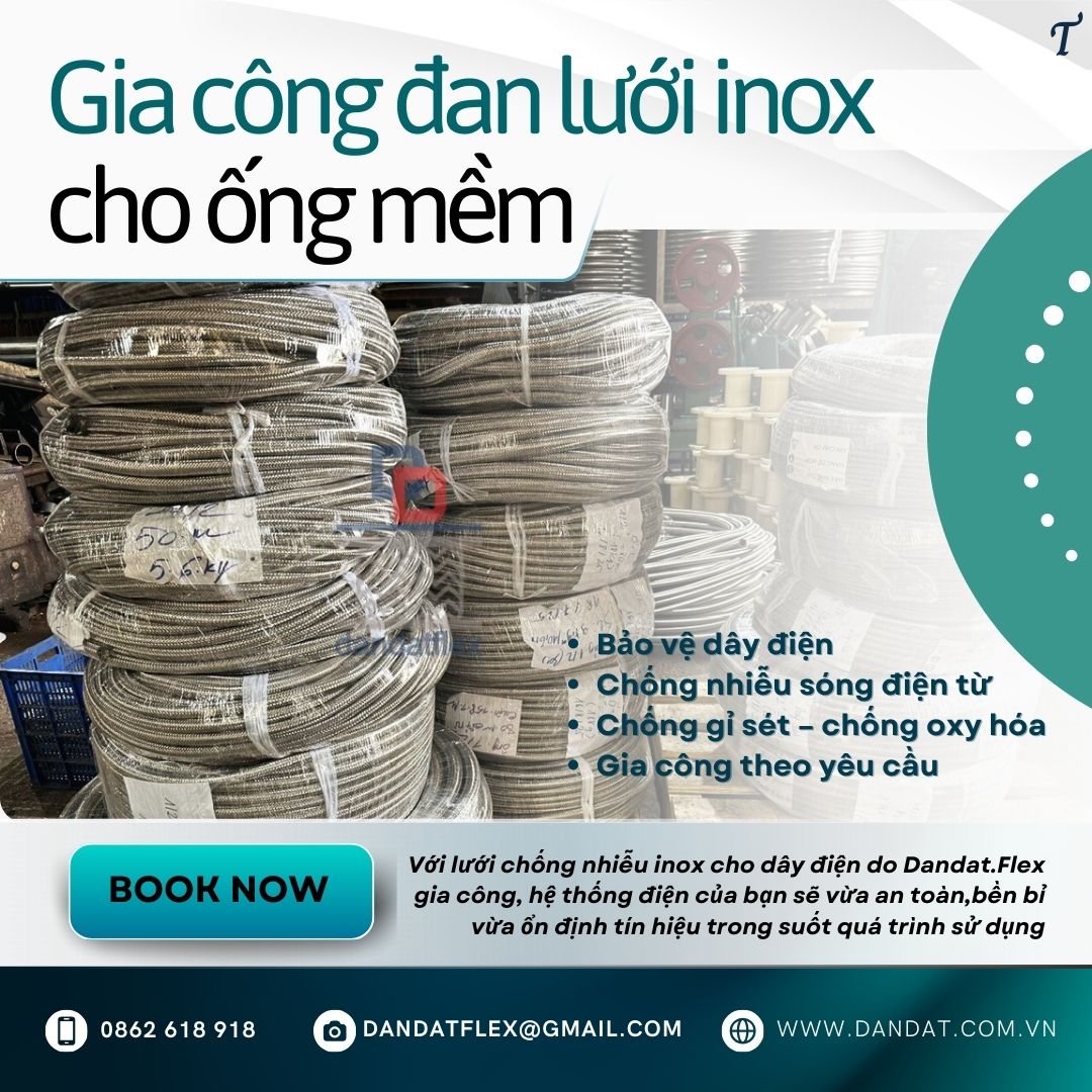 Với lưới inox bọc dây điện chống nhiễu sóng do Dandat.Flex gia công, hệ thống điện của bạn sẽ vừa an toàn, bền bỉ vừa ổn định tín hiệu trong suốt quá trình sử dụng.