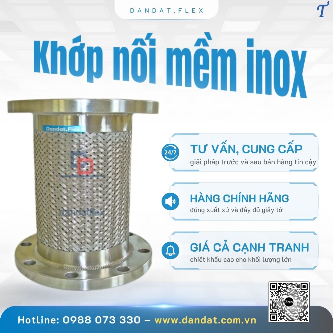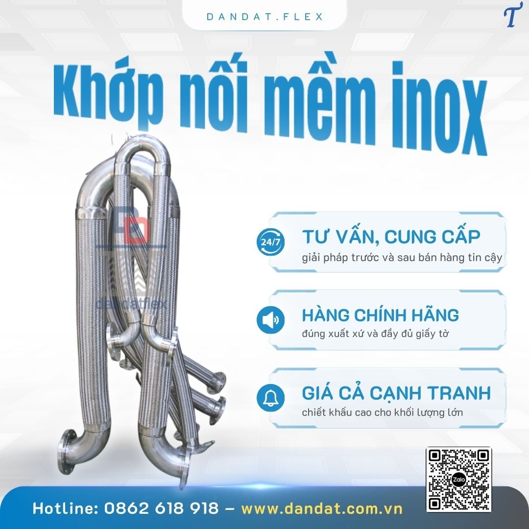 Dân Đạt là địa chỉ tin cậy cung cấp khớp nối mềm inox 304 đạt tiêu chuẩn ISO, đảm bảo độ bền và hiệu suất tối ưu. Liên hệ ngay để nhận tư vấn và báo giá!