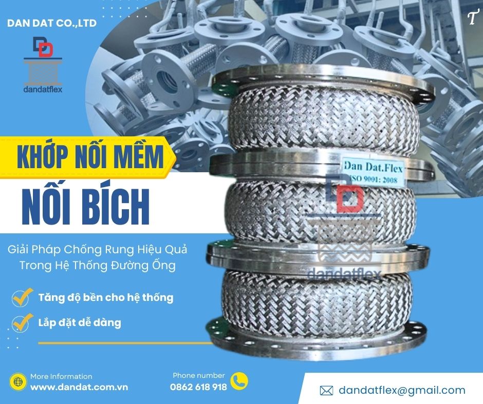Dân Đạt chuyên cung cấp khớp nối mềm inox- khớp chống rung chất lượng cao, đạt tiêu chuẩn ISO, đảm bảo độ bền và hiệu suất tối ưu. Liên hệ ngay để nhận tư vấn và báo giá!