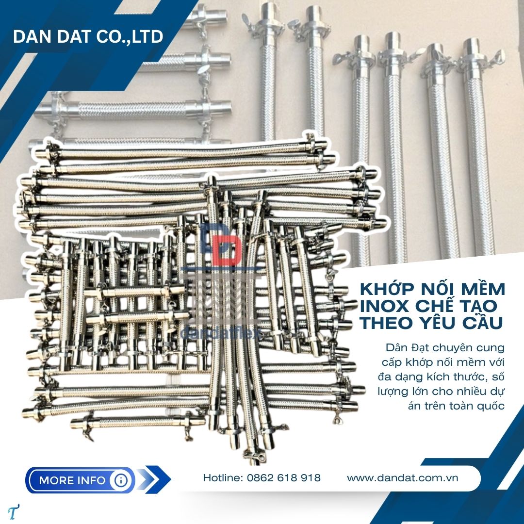 Dân Đạt chuyên cung cấp khớp nối mềm inox- khớp chống rung chất lượng cao, đạt tiêu chuẩn ISO, đảm bảo độ bền và hiệu suất tối ưu. Liên hệ ngay để nhận tư vấn và báo giá!