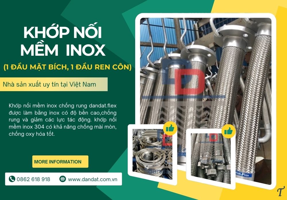 Dân Đạt là địa chỉ tin cậy cung cấp khớp nối mềm inox 304 đạt tiêu chuẩn ISO, đảm bảo độ bền và hiệu suất tối ưu. Liên hệ ngay để nhận tư vấn và báo giá!