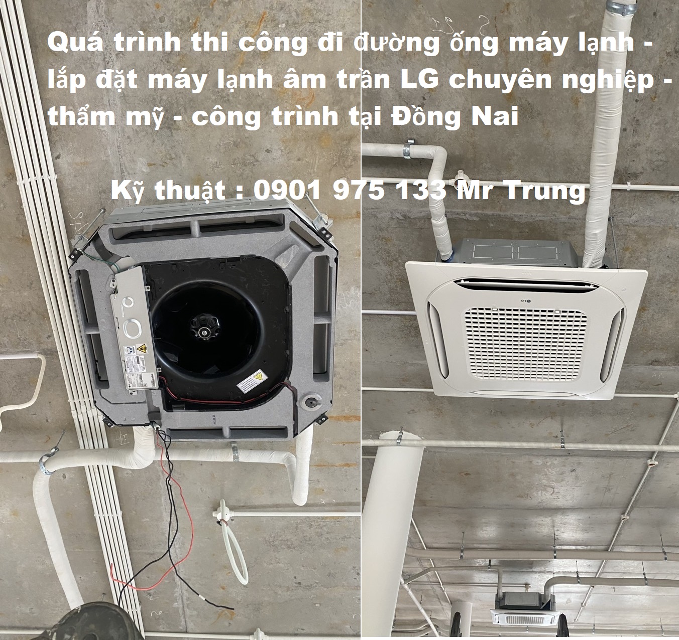 Quá trình thi công và hoàn tất việc lắp đặt máy lạnh âm trần LG