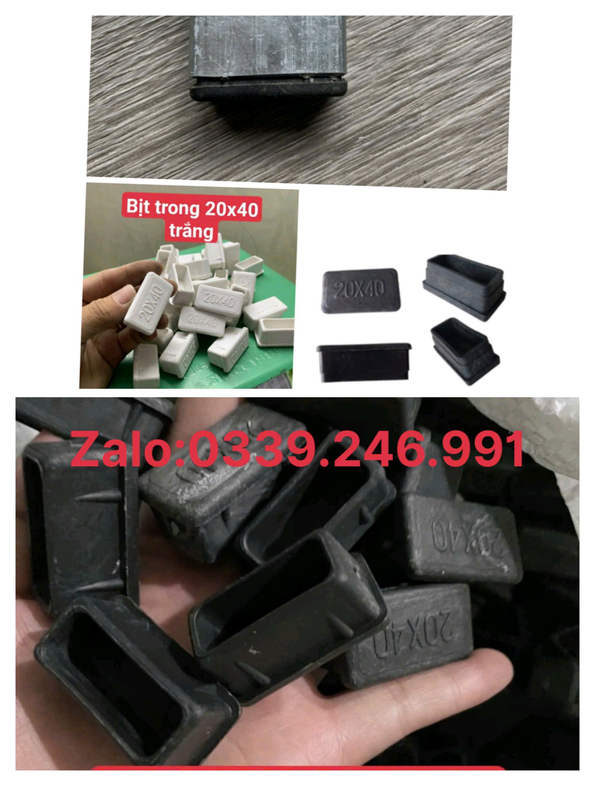 + Bịt đầu sắt hộp 2x4cm chân bàn ghế, nút bịt trong 20x40mm