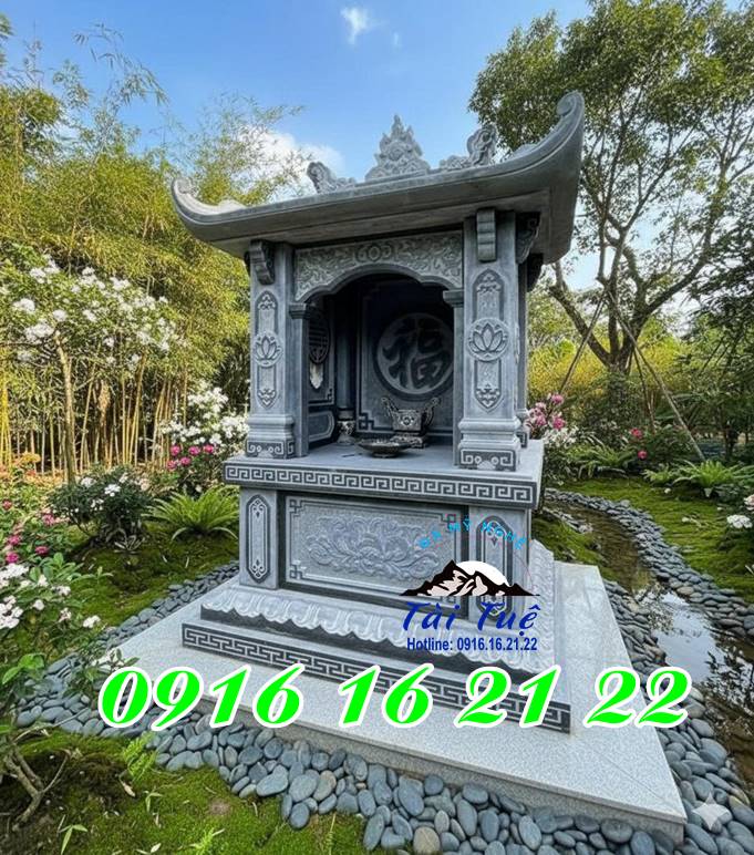 • Hoa văn và chất liệu đá nên chọn loại bền, ít thấm, chạm khắc trang nghiêm đúng tín ngưỡng.