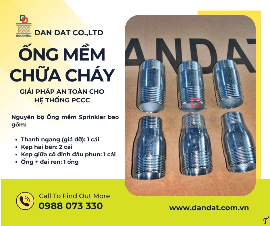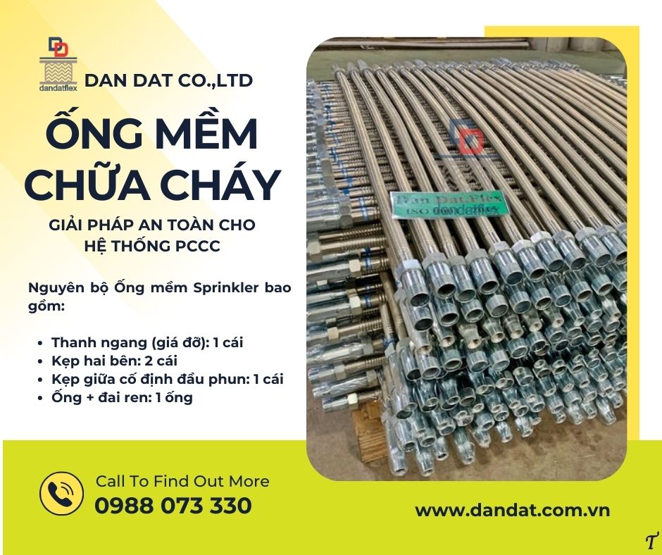 Công Ty TNHH Sản Xuất - Thương Mại và Dịch Vụ Dân Đạt chuyên sản xuất và kinh doanh các loại ống nối mềm chữa cháy, dây mềm nối đầu phun sprinkler với đa dạng kích thước, chiều dài, đầu nối và vật liệu. Với hệ thống quản lý chất lượng theo tiêu chuẩn ISO 9001:2015, các thiết bị được kiểm tra chất lượng nghiêm ngặt, chúng tôi đảm bảo các sản phẩm đạt chất lượng theo tiêu chuẩn quốc tế