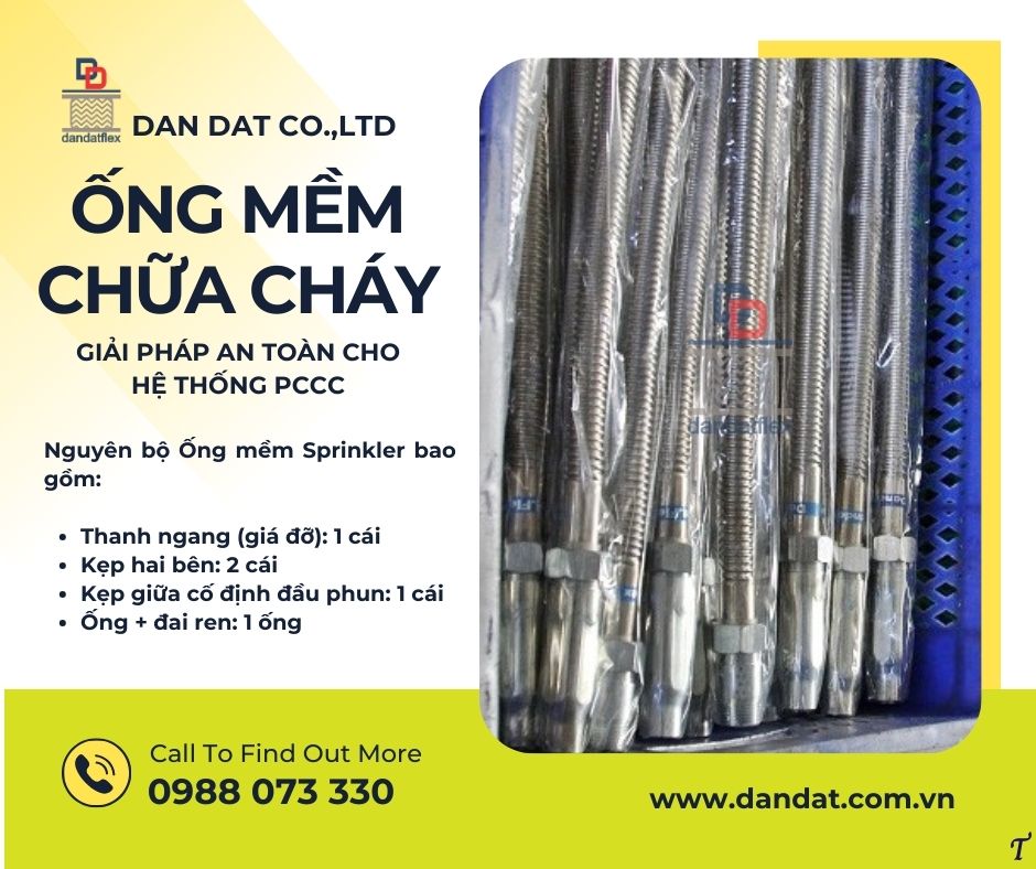 Ống mềm nối đầu phun sprinkler - Ống mềm chữa cháy là 1 trong những sản phẩm của Công ty Dân Đạt, được thành lập vào năm 2005 – là đơn vị chuyên sản xuất và phân phối các thiết bị công nghiệp hàng đầu tại Việt Nam.