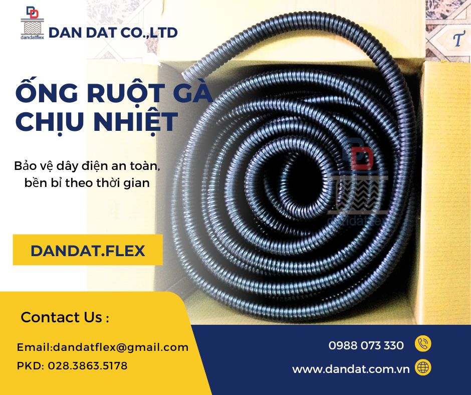 Dan Dat Co.,LTD - Chuyên sản xuất và phân phối ống ruột gà lõi thép, ống ruột gà lõi thép bọc nhựa, ống ruột gà lõi thép bọc lưới, ống ruột gà lõi thép bọc nhựa bọc lưới, ống ruột gà lõi thép bọc nhựa mềm PVC, ống luồn dây điện, ống ruột lõi thép bọc nhựa chống cháy nổ, ống ruột gà lõi thép chống thấm nước và dầu,..Thường được dùng để luồn dây điện trong các công trình thi công điện, tự động hóa, tủ điều khiển, dây chuyền tự động,...Dùng được cả trong nhà và ngoài trời.