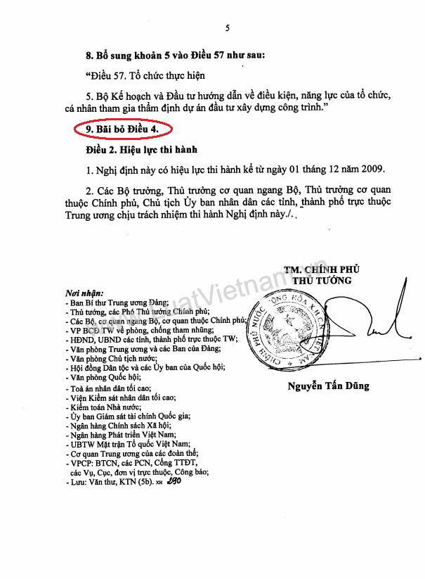 Nghị định 83/2009/NĐ-CP bãi bỏ hoàn toàn Điều 4 của Nghị định 12/2009/NĐ-CP vì Chính phủ ban hành một nghị định mới hoàn toàn về công tác này đó là Nghị định số 113/2009/NĐ-CP ngày 12/12/2009; Bộ Kế hoạch và Đầu tư cũng ban hành thông tư hướng dẫn luôn theo Thông tư số 13/2010/TT-BKH ngày 02/6/2010.