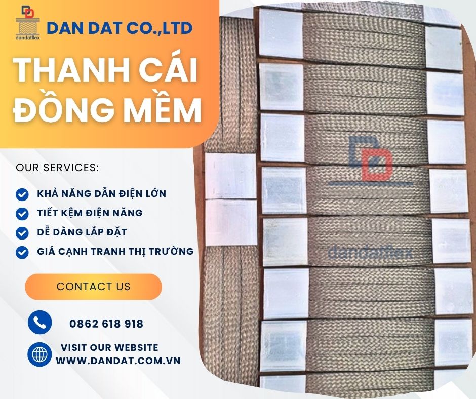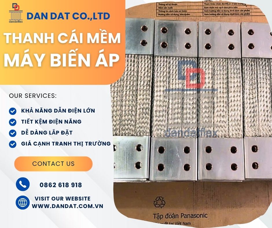 Sản xuất theo yêu cầu với các kích thước đa dạng: Thanh cái đồng mềm nối máy biến áp, thanh nối mềm nối cực máy biến áp, thanh cái mềm chống rung máy biến áp, khớp nối đồng mềm máy biến áp, khớp nối đồng bện mềm, dây tiếp địa máng cáp, thanh cái mềm, khớp nối máy biến áp, Flexible busbar, Busbar đồng mềm trong tủ điện, trạm biến áp, thanh đồng bện mạ thiếc, dây đồng bện tiếp địa tủ bảng điện - thang máng cáp, dây te tiếp địa đồng bện,...