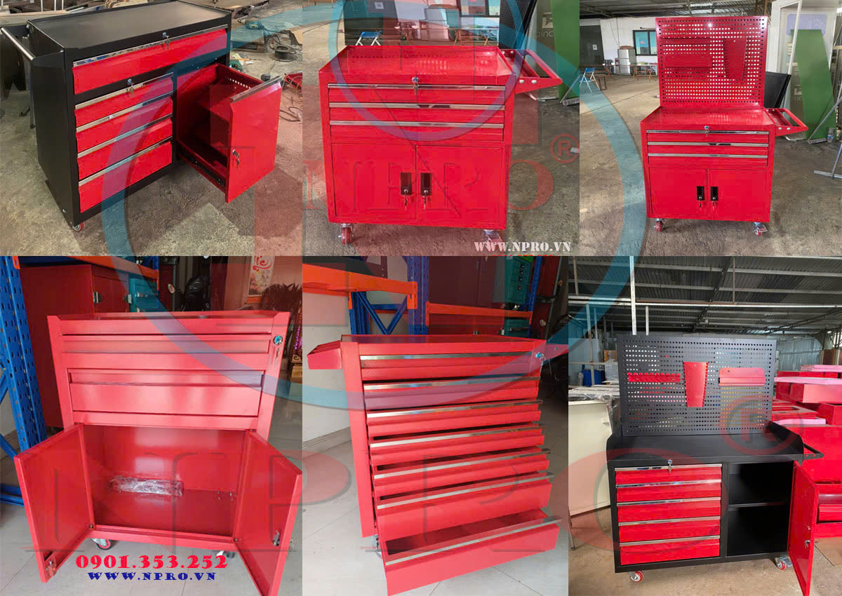 - Xe đẩy 2 ngăn đến 4 ngăn kết hợp bảng treo đồ nghề phía trên