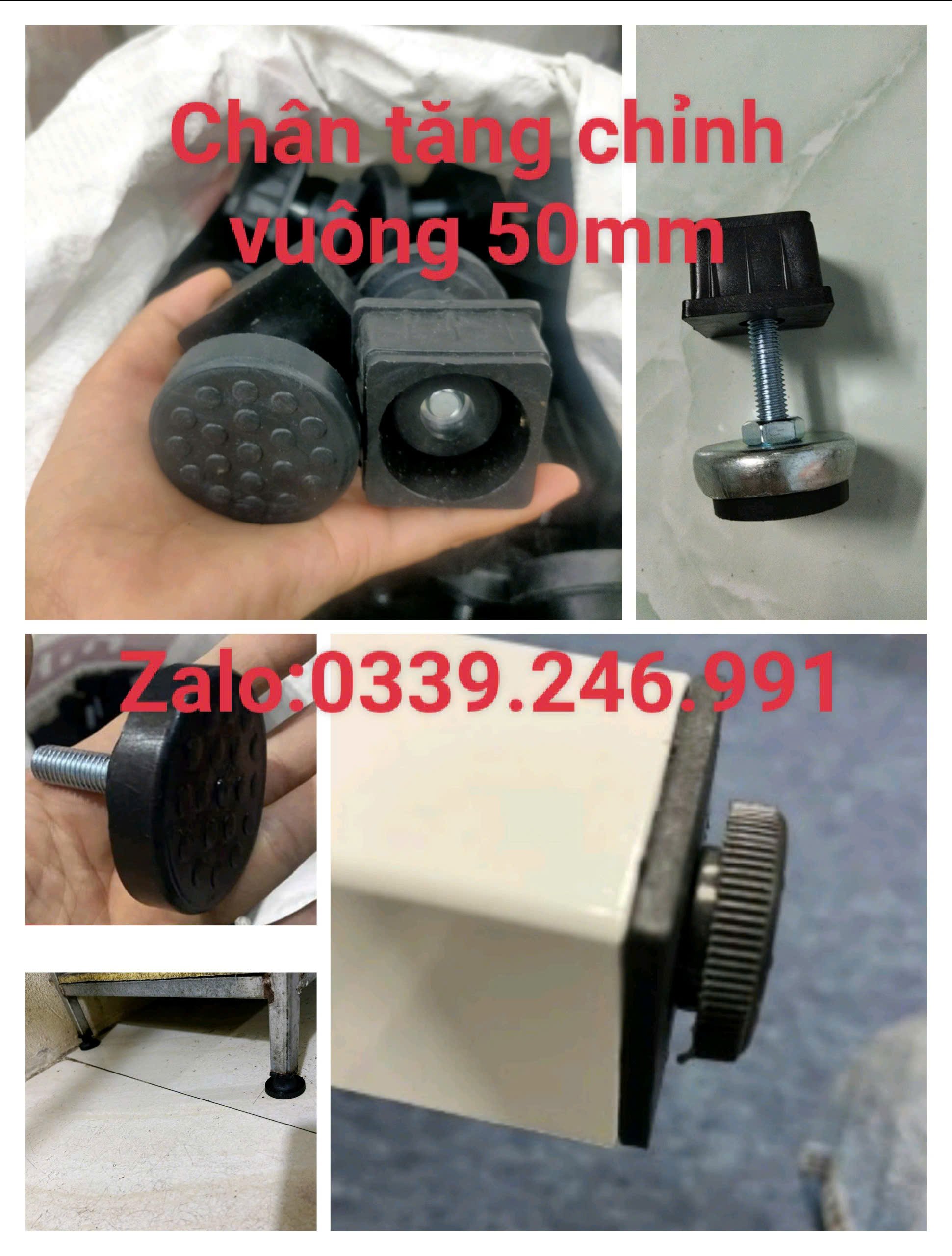 Các loại này đều dùng cho ống sắt hộp vuông 50x50 mm, có ren M10 để tăng giảm chiều cao.